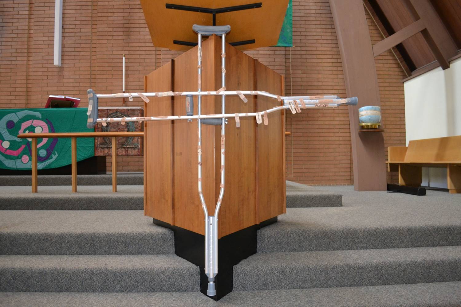 bandaid prayers on a crutch cross