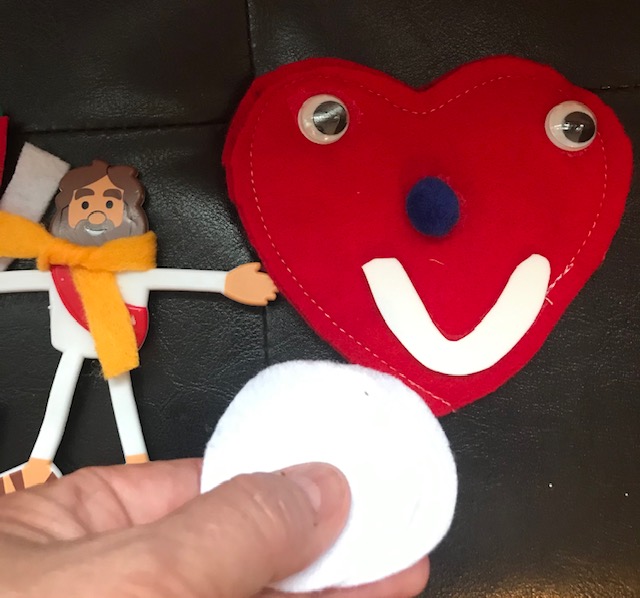 Each kit contains an altar-ish container, felt elements of a Holy Communion and baptism, a bendy Jesus with matching stoles of a season, a battery operated tea candle, felt Bible, Alleluia wand, and a heart face participant! In their pew, kids set up their own altar to play along, and the instruction sheet tells them what to do when: play baptism, lift up the bread or wine felt pieces during communion, shake the Alleluia wand when you hear the word “Alleluia!”, and the Lord’s Prayer in pictures.