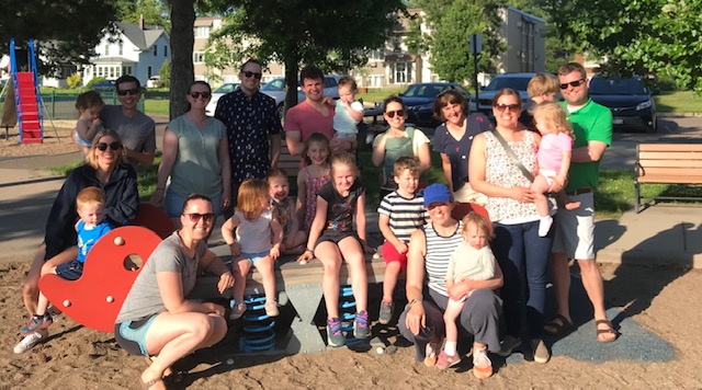 At my church, Bethlehem Lutheran Church – Twin Cities, we started a new program this summer for parents and children to meet and play! It’s called “Church Family in the Park, and it is just that! Church family coming together at a local park, eat pizza, and play together.
