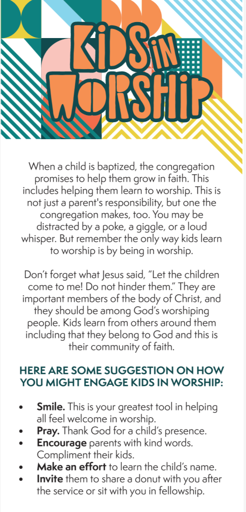 Semi-New Pew Card on helping families and other households worship together. Created by Graphic Designer, Whitney Stofflet. Check it out: