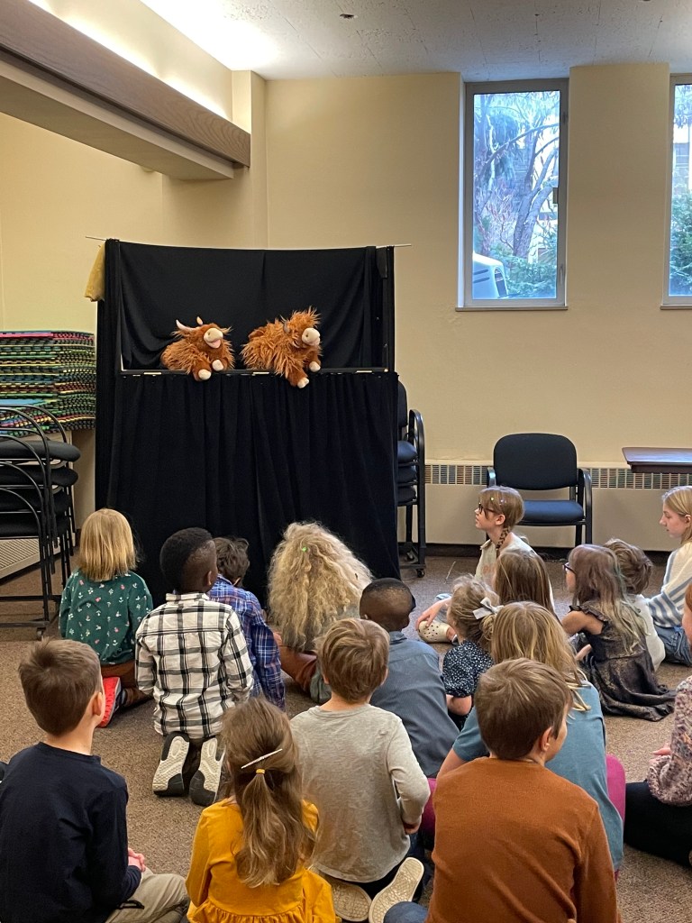 ECHO: On the 1st, 3rd, and 5th Sundays of the month, ECHO kids start and end with their parents/caregivers in worship. After Storytime, kids follow the leader out of worship to sing songs, learn the Bible story with our parable puppets, Zebu and Zebob, and play games together. They return to sit with their parents at the offertory.